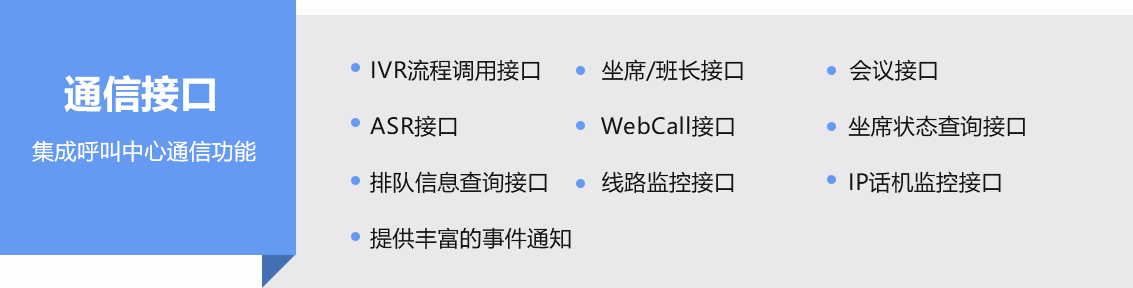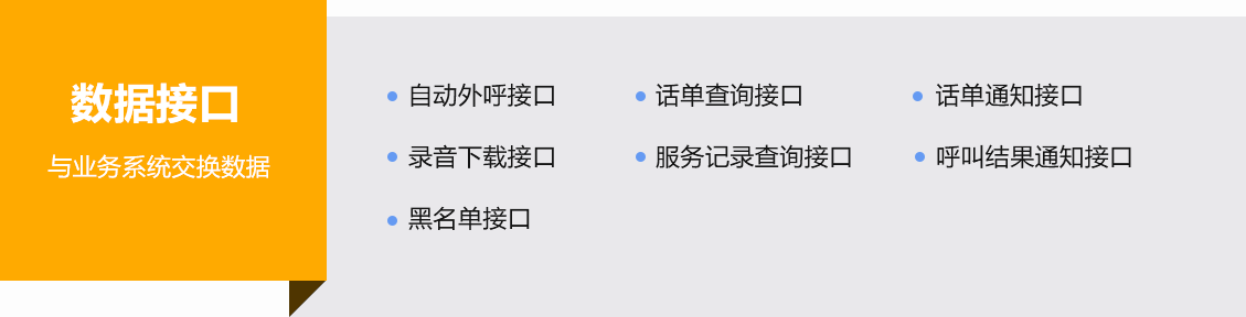 提供豐富的二次開發接口(如:通信接口、數據接口、AI機器人接口等),輕松構建全渠道智能呼叫中心系統。