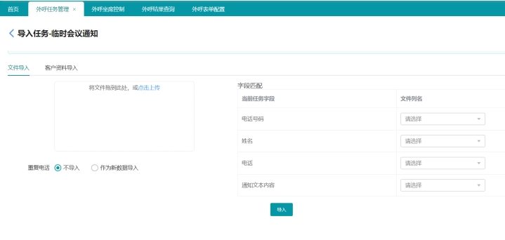 用于管理不同外呼通知里面需要導入的具體字段,如:姓名、職務、電話號碼、通知內容等。